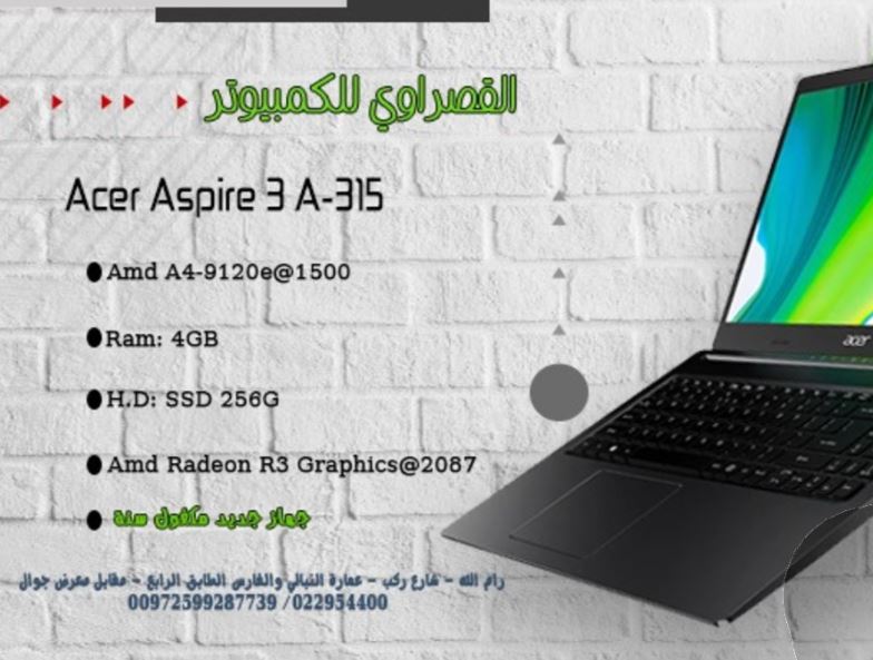• لاب توب Acer Aspire 3 A-315 | جهاز جديد مكفول سنة