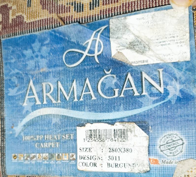 • سجادة طولها 3 متر و 80 و عرضها 2 متر و 80, طبعاً الحاله ولا خدش
