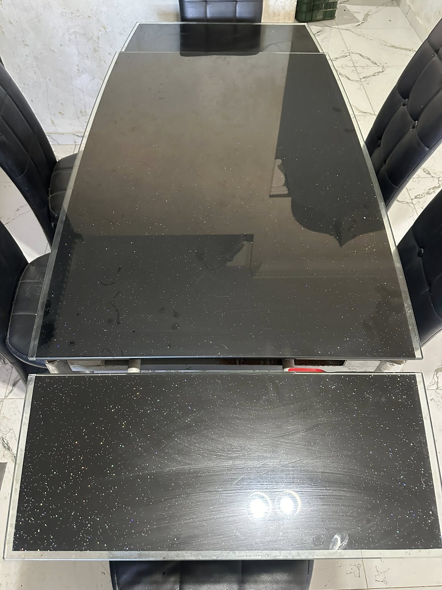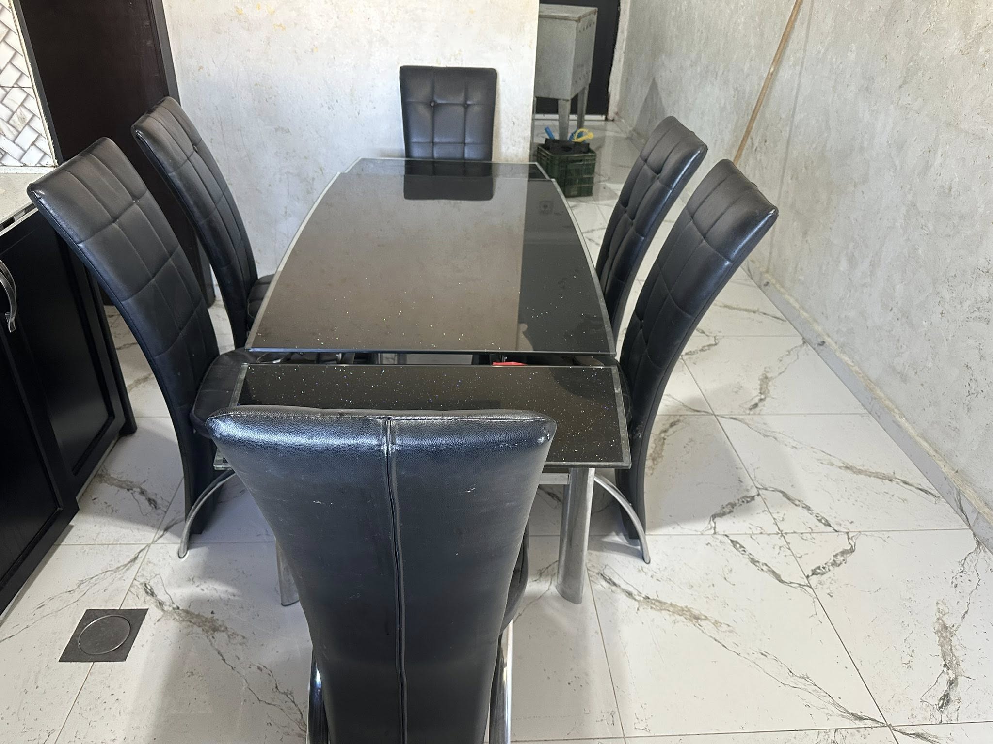 • طاولة سفرة مع ست كراسي جلد و ستانلس والوجه كزاز وضع ممتاز, للتواصل على الرقم المرفق أو رقم وخدمة توصيل متوفره