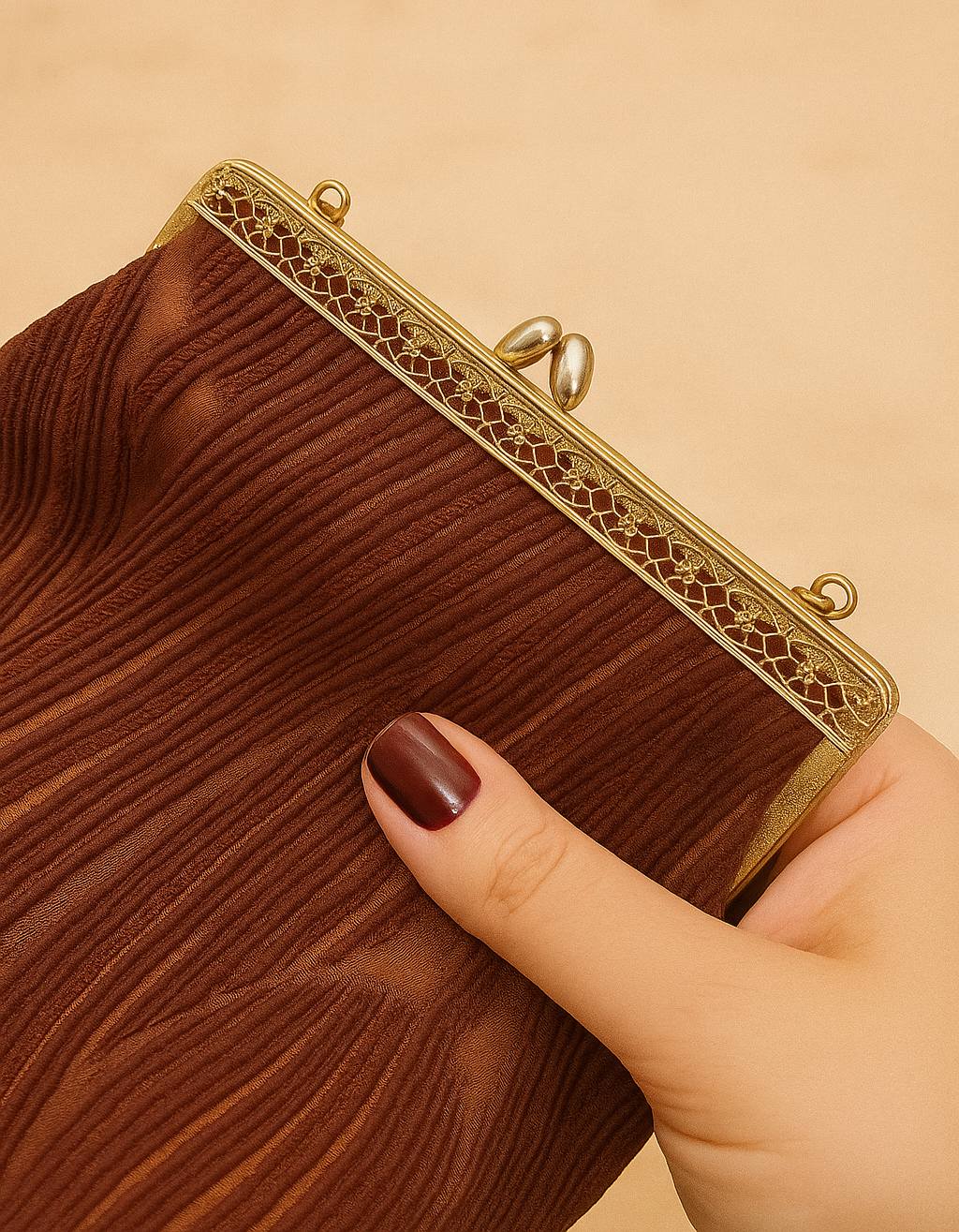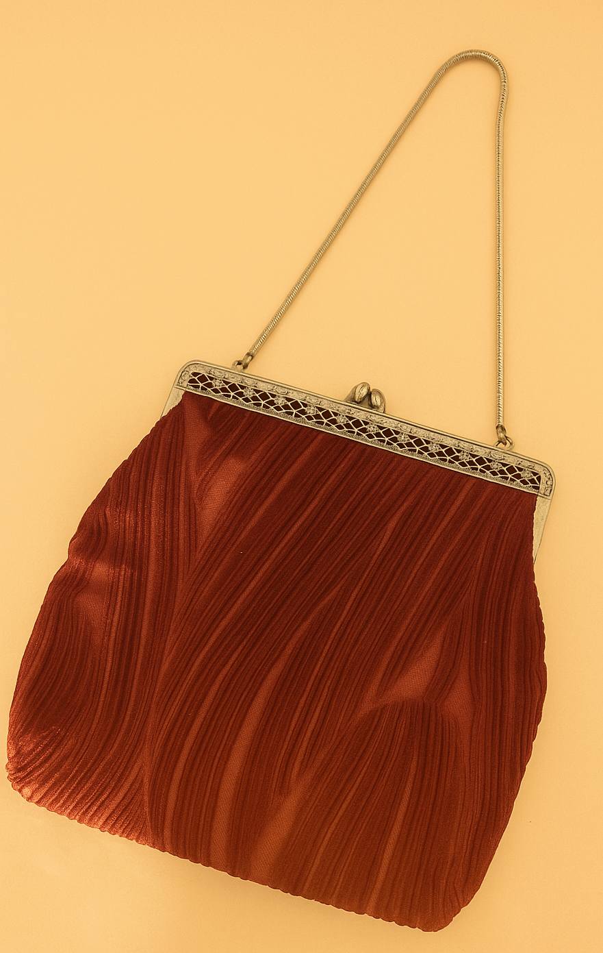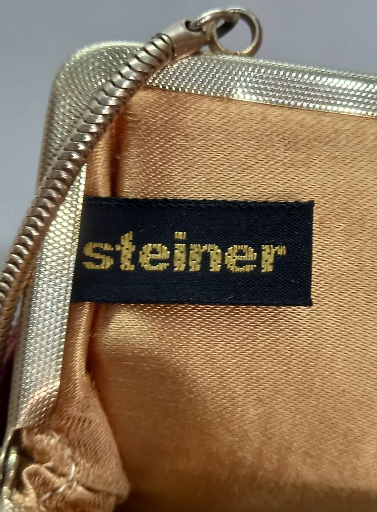 حقيبة يد صغيره للسيدات فاخره جداً, ماركة Steiner, حقيبة ستاينر المسائية الكلاسيكية. هذه قطعة فريدة تُضفي لمسةً من فن الآرت ديكو, مصنوعه من قماس فاخر مبطنه بالحرير من الداخل بلمسه معدنيه ذهبية اللون, حجم 18 × 17 سم الحجم لايشمل السلسله بحاله ممتازه, يتوفر توصيل لكافة المناطق