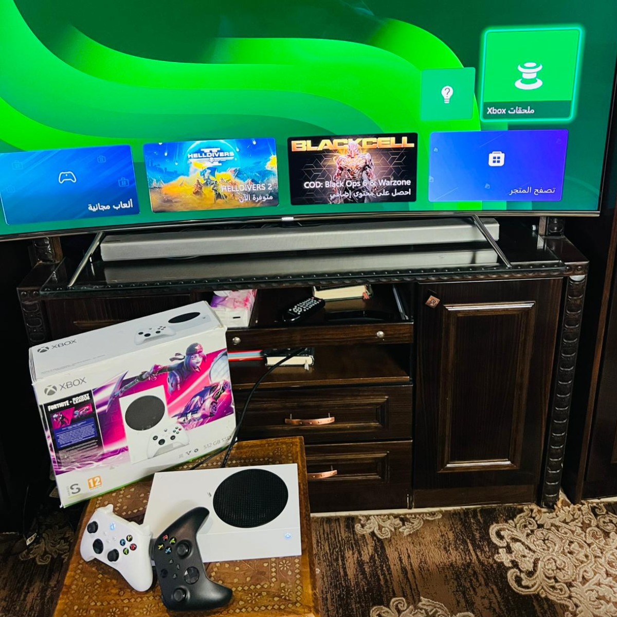 • Xbox Series S | اكس بوكس سيريس اس , 512GB SSD ,إيدتين سيريس أصليات ,شبه جديد شامل الكرتونة وجميع الكوابل الأصلية