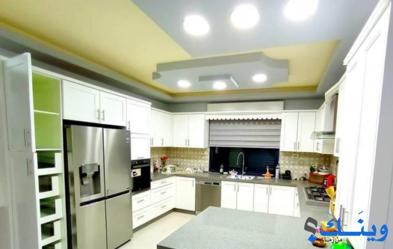 مطبخ خشب زان كبس لون ابيض ، ديكورات مع اضائة مخفية وثريات ، ساعة ماء وكهرباء ، خزانات شمسية ، عفش بيت ، أجهزة تكيف بالكرتونة ، ابواب خشب زان ، برندة كبيرة ، بويلر كهربائي تسخين ماء ، شبابيك دبل كلاس مع ابجورات