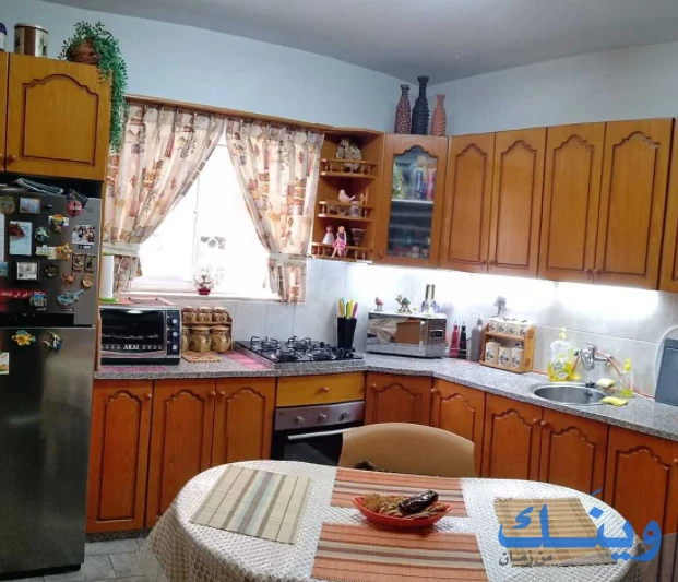 غرفتين نوم و صالون و حمامين و مطبخ شبه معزول و غرفة صغيرة للغسالة و بلكون كبير ما يقارب 7*2.5 مغلق بالكامل من الألمنيوم . مساحة الشقة في الطابو 100متر مربع و تم بعدها أضافة البلكونه للشقة