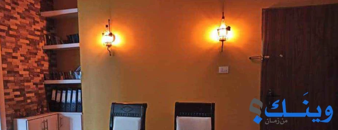 • ، ديكور الشقة في قمة الروعة، حديقة كبيرة تابعة للشقة مع انجيل طبيعي، نافورة ماء في الحديقة.