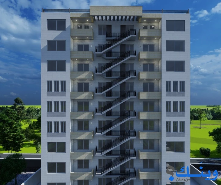 • موقع مميز يبعد عن شارع النفق 200متر دقيقة واحده في السيارة الاسكان هو عباره عن 8 طوابق كل طابق شقتان على مساحة ارض 752متر مربع