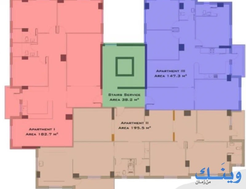 • > كل طابق يحتوي 3 شقق فقط بمساحات مختلفة 160، 195، 208 متر مربع