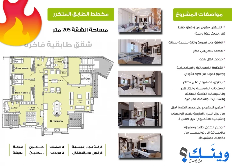 • 💰-سعر الشقة على الكاش: 200 الف دولار