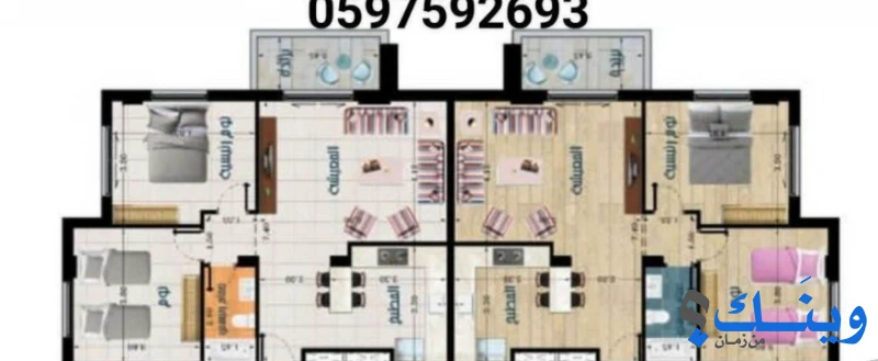 • ✅ كل شقة مكونة من غرفتين نوم + حمام + مطبخ+ صالة + بلكونة