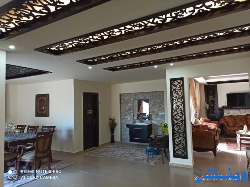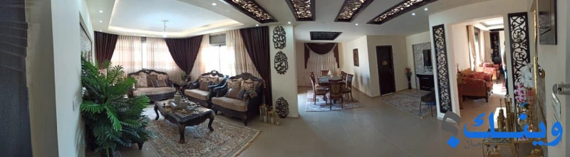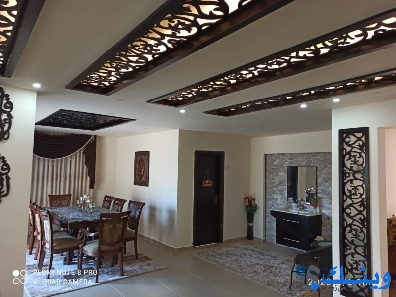 • - مكونة من ٣ غرف و٣ حمامات وصالة وصالون ومطبخ راكب من أجود أنواع الخشب و٤ برندات كبار.