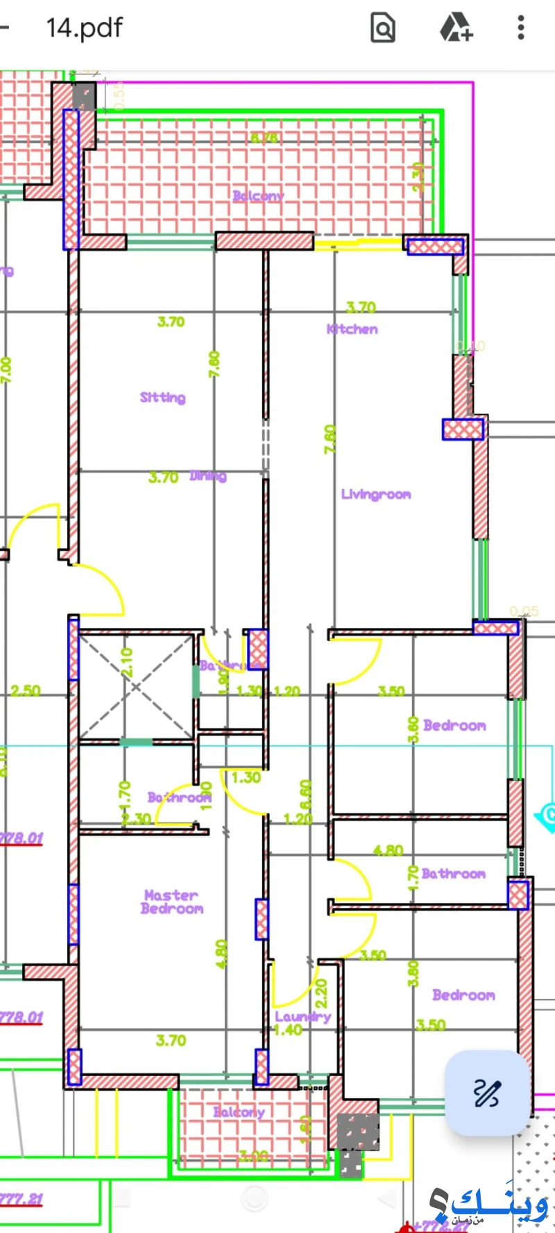 • المساحة : 190 متر مربع مع خدمات / 170 متر مربع صافي