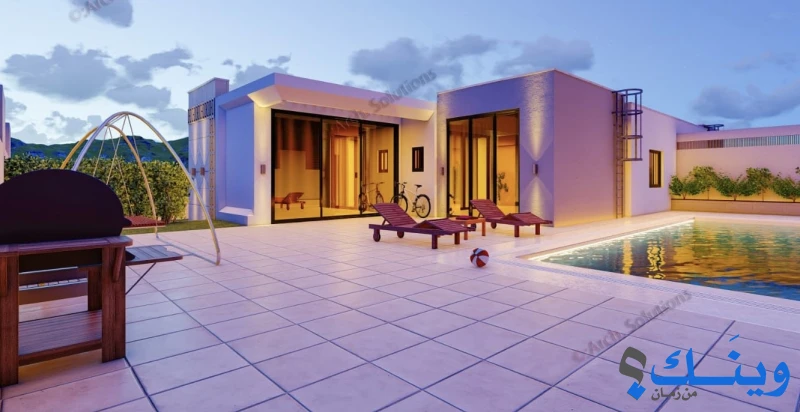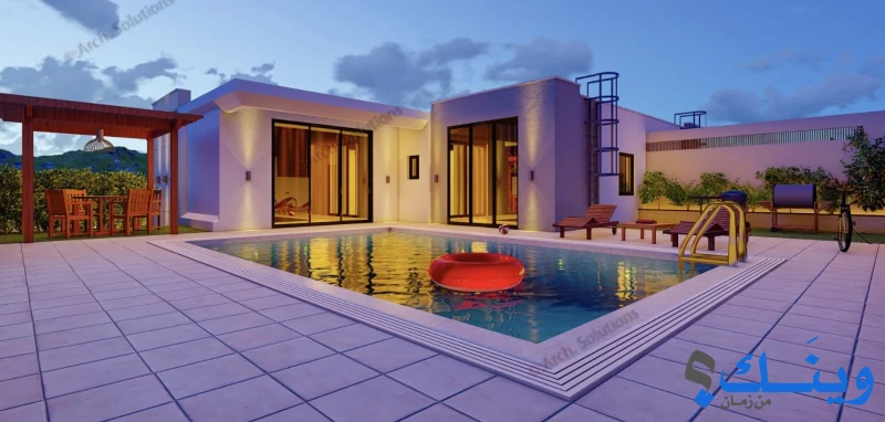 • مساحة البناء : 190 متر مربع , مساحة البركة : 10x5 متر