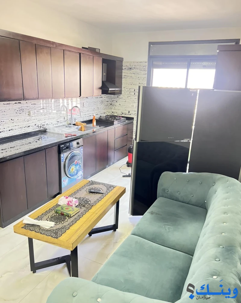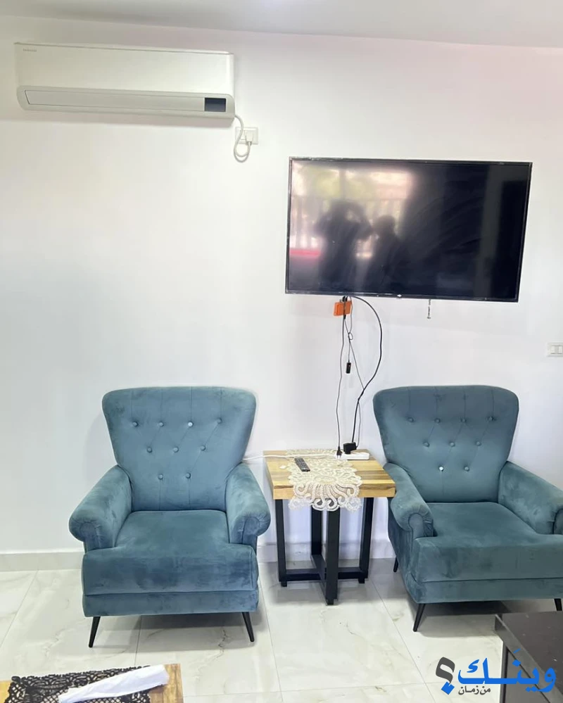 • يتوفر شقة غرفتين نوم وصاله ، ومطبخ وحمام وترس خارجي