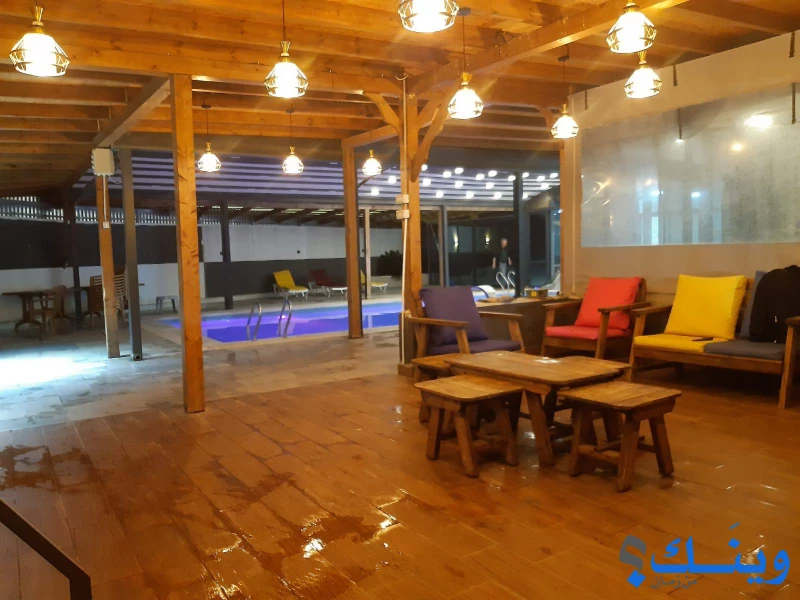 حمام سباحة (بركة) 6*12 مع نظام فلتر اوتماتيكي " من 90 سم - 2 متر " , 2 شاورات خارجية + حمام خارجي ,بركة مدفئة بنظام تدفئة كامل مع ميزة إغلاق و فتح اوتوماتيكي لسقف الشاليه, مطبخ مجهز بالكامل , 2 حمامات داخلية, ترس مطل على البركة و السهول المحيطة