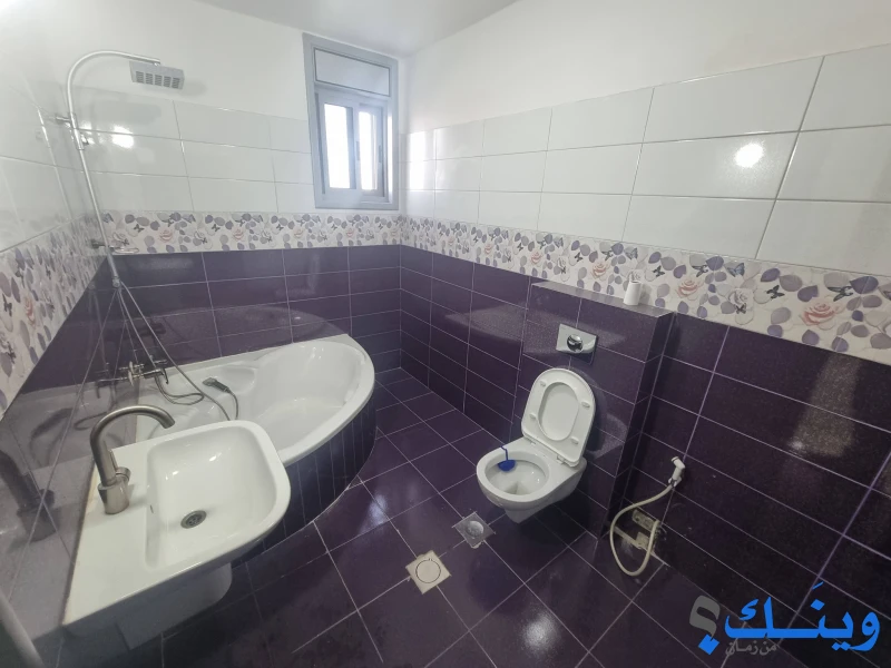 • مواصفات الشقة: جاكوزي داخل أحد الحمامات، مطبخ أمريكي مجهز، برندات، ترسات، تدفئة مركزية، حمام شمسي، بويلر، ماتور ضغط المياه.