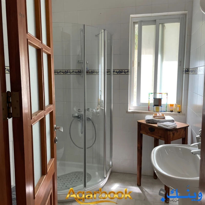 • الطابق الثاني: 3 غرف، حمامين، ترس، مطبخ صغير