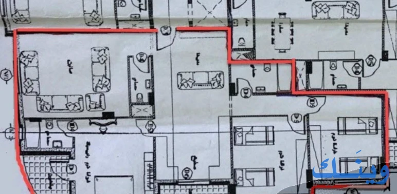 • مساحة الشقة 165 متر مربع وتقع في الطابق الرابع ومفتوحة على شارعين