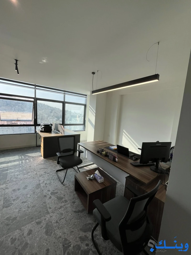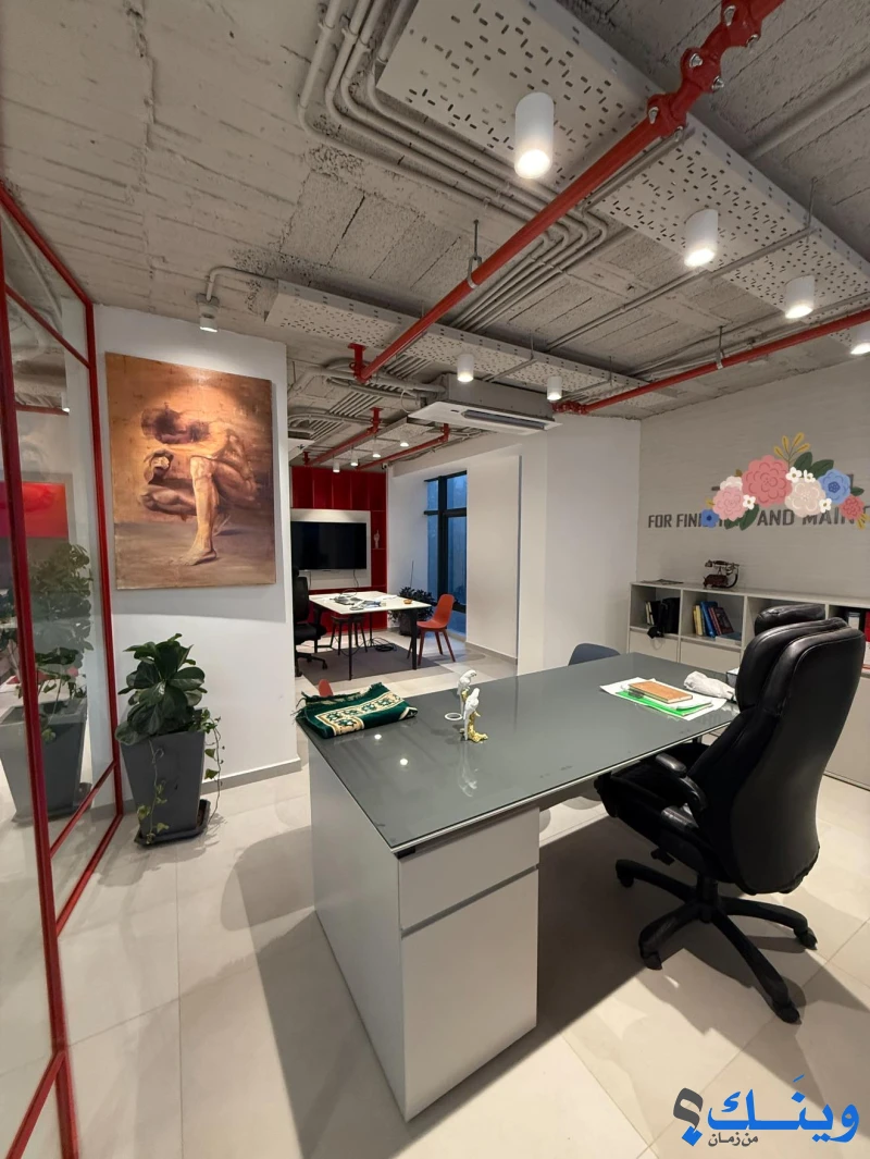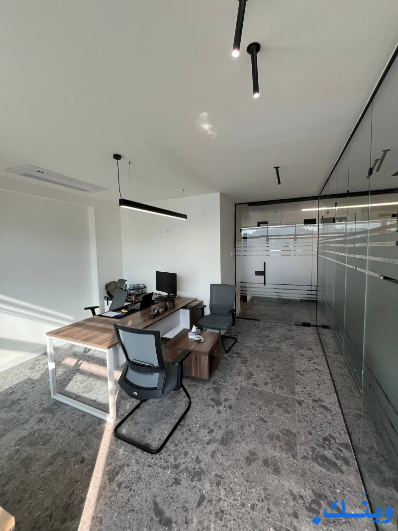 تكيف مركزي VRF، بلاط فاخر قياس 100*100إسباني، حمام ومطبخ ذو تصميم مميز، مساحة مميزة للموظفين مفصولة بتصميم جميل، مكتب مدير كبير مع صالة اجتماعات، المكتب مجهز بالكامل من الإنترنت والكاميرات وشاشة عرض ومكتب مدير ومكاتب موظفين، الفئات المستهدفة مكاتب هندسية او مؤسسات اجنبية او محلية صغيرة.