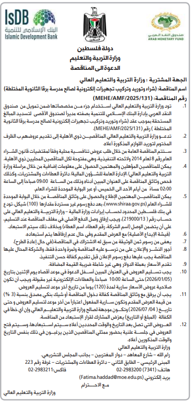 رقم المناقصة: (2025/131/MEHE/AMF)