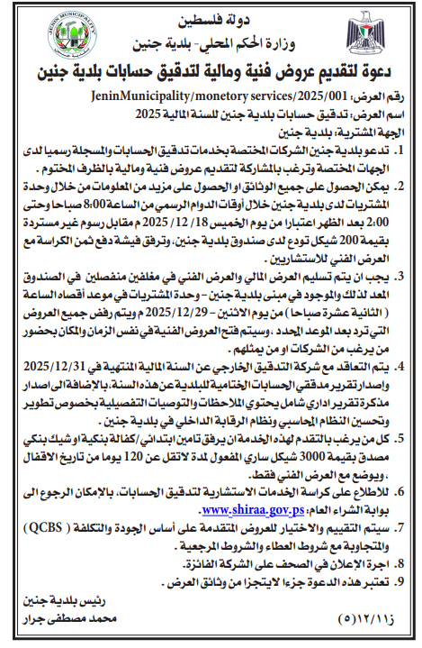 إعلان طلب استدراج عروض أسعار لتدقيق حسابات المجلس للعام 2025