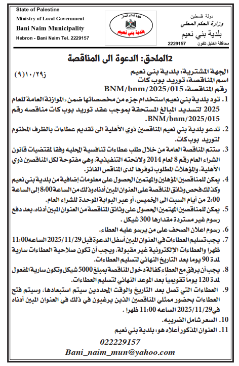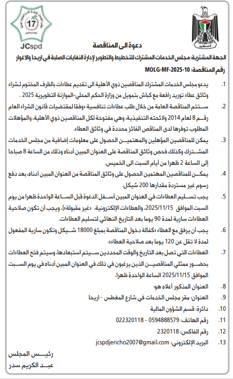 رقم المناقصة: 10-2025-MOLG-MF