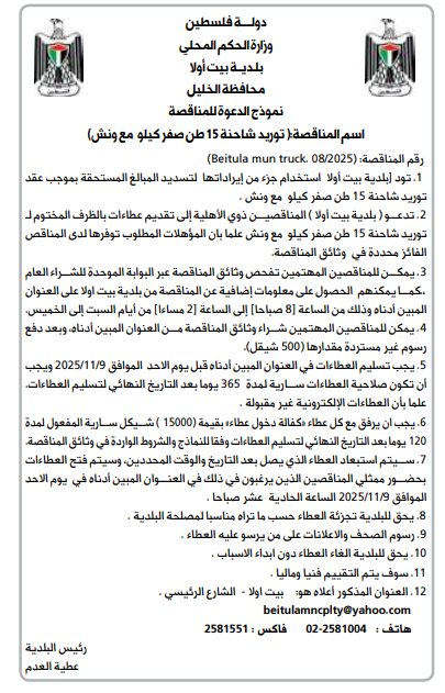 رقم المناقصة : 2025.Beitula mun truck