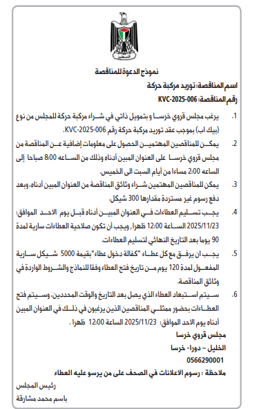 اسم المناقصة : توريد مركبة حركة