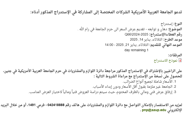 الموضوع: دهان و توابعه - تقديم عرض السعر الى حرم الجامعة في رام الله .