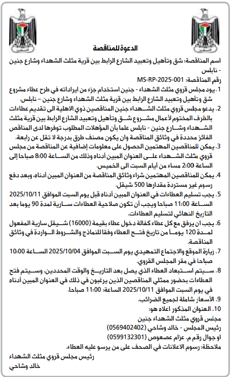 رقم المناقصة: 001-2025-MS-RP